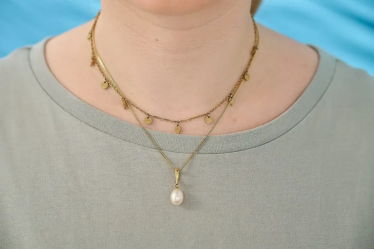 Ihre Goldkette mit echter Perle erhielt sie zur bestandenen Meisterprüfung von ihren Eltern.