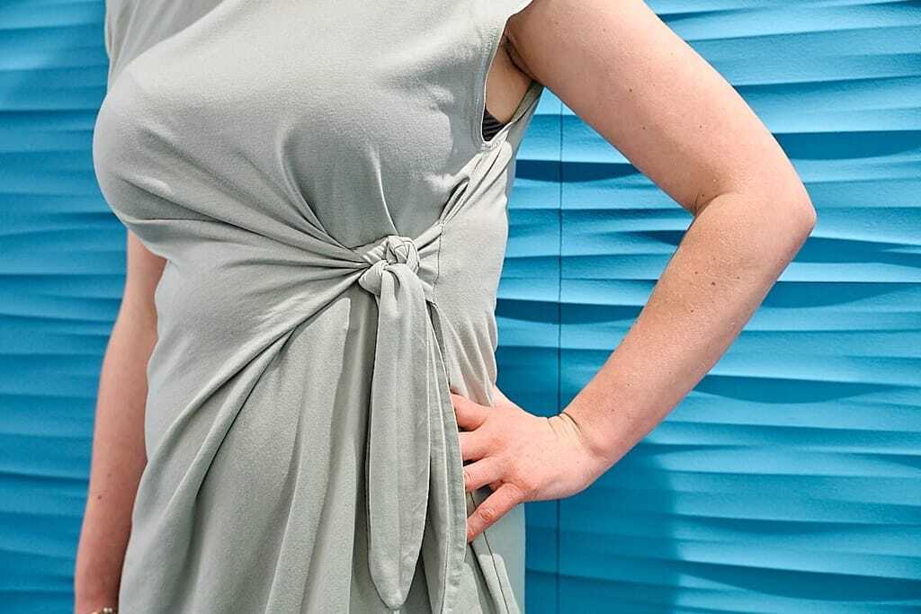 Als Mama von zwei kleinen Kindern konnte sich Schulte in ihren Schwangerschaften und Stillzeiten auf eines besonders verlassen: ihr kurzärmliges Umstandskleid in Mint.