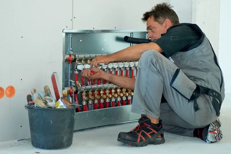 Der Schuh als Sitzhilfe: Jürgen Kloth von Steck Haustechnik muss bei seinen Arbeiten oft knien.