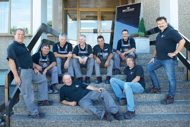 Zufrieden mit den Testschuhen: Firmenchef Wolfgang Schuldes (re.) und das Testteam von Steck Haustechnik.