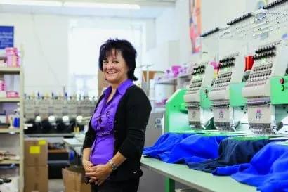 Doch Birgit Rodler wäre nicht sie selbst, wenn sie nicht ihre Beharrlichkeit einsetzen würde: Die Betriebsübernahme ist noch nicht einmal beschlossene Sache, als sie bei den Großkunden ihres ehemaligen Arbeitgebers vor der Tür steht und für ihr zukünftiges Unternehmen wirbt. Heim kehrt sie mit einer Tasche voller Aufträge. Weil in den Wirren der Übernahme ein Firmengebäude fehlt, starten die Frauen übergangsweise so wie andere erfolgreiche Gründer nach dem Zweiten Weltkrieg: in der heimischen Garage. „Zwei Einkopf-Stickautomaten haben wir bei uns zu Hause aufgestellt und dann habe ich zwei Wochen lang kein Tageslicht gesehen“, so Rodler. Produktionsausfälle kann sich das junge Unternehmen nicht erlauben, auch wenn es erst später in größere Räume umziehen kann.