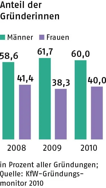 Immer noch wagen weniger Frauen als Männer eine Betriebsgründung. Dabei verfügen Frauen über viele Potenziale. Laut IHK-Gründerreport lag der Anteil der Gründerinnen 2010 bei 40 Prozent.