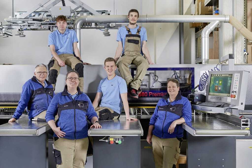 Eva und Franz Mayr (vorne li.), Geschäftsführer der Schreinerei Mayr in Schwendi, fördern jeden Azubi entsprechend seinen Stärken. Sie haben keine Probleme ihre Azubis zu halten oder junge Menschen von einer Ausbildung zu überzeugen.