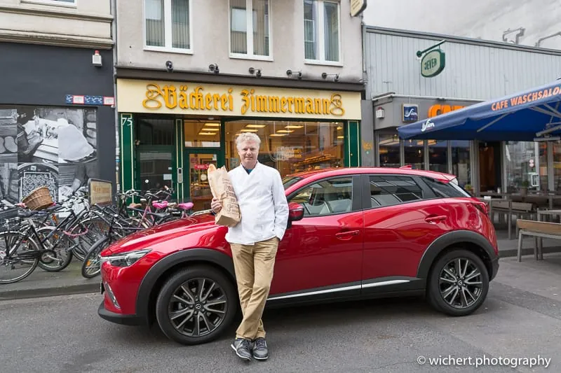 Bäckermeister Markus Zimmermann braucht nur einen Blick auf den neuen Mazda CX-3 zu werfen, um ein vernichtendes Urteil zu fällen: Ein Auto mit einem Kofferraum, in den gerade einmal zwei Brotkisten nebeneinander passen, das kommt für ihn nicht infrage. Zimmermann holt zwei seiner braunen Bäckerkisten und zwängt sie in das Fach unter der Heckklappe. „Sehen Sie: Wir liefern jeden Tag Brottüten und Kisten in ganz Köln aus. Da kann man sich nicht leisten, mehrmals hin- und herzufahren.“ Auch im dichten Straßenverkehr kann er sich nicht so recht mit dem Mazda anfreunden: Weder das Head-up-Display noch die Rückfahrkamera, die solide Verarbeitung oder die Wendigkeit des SUVs können ihn umstimmen.