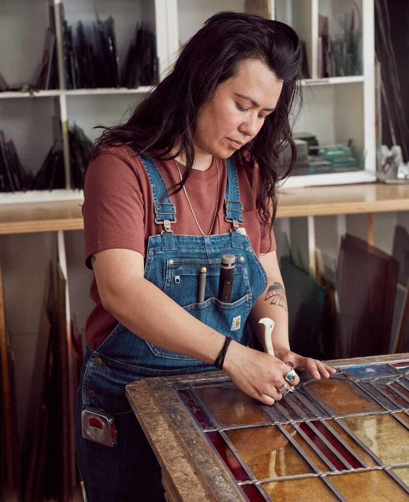 Die langen Damen-Arbeitsoveralls mit einer Reißverschlusstasche auf der Brust und Einschubtaschen in verschiedenen Größen sind aus flexiblem Stretch-Denim-Material. Das Design ist doppelt gefüttert – gut für Knieschoner. Neben den neuen Latzhosen bietet Carhartt das Loose Fit Shirt jetzt in vielen neuen Farben wie Bittersweet, Mink und Sable an.