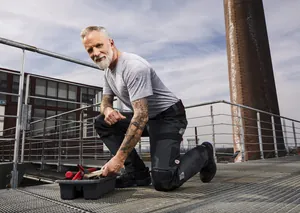 Zudem ist eine neue Hybrid-Arbeitshose im Programm, die robustes Gewebe mit Superstretchmaterial kombiniert und viel Komfort bieten soll: Hinten im Bund, Schritt und Gesäß ist sie fast komplett aus Stretch gefertigt.
