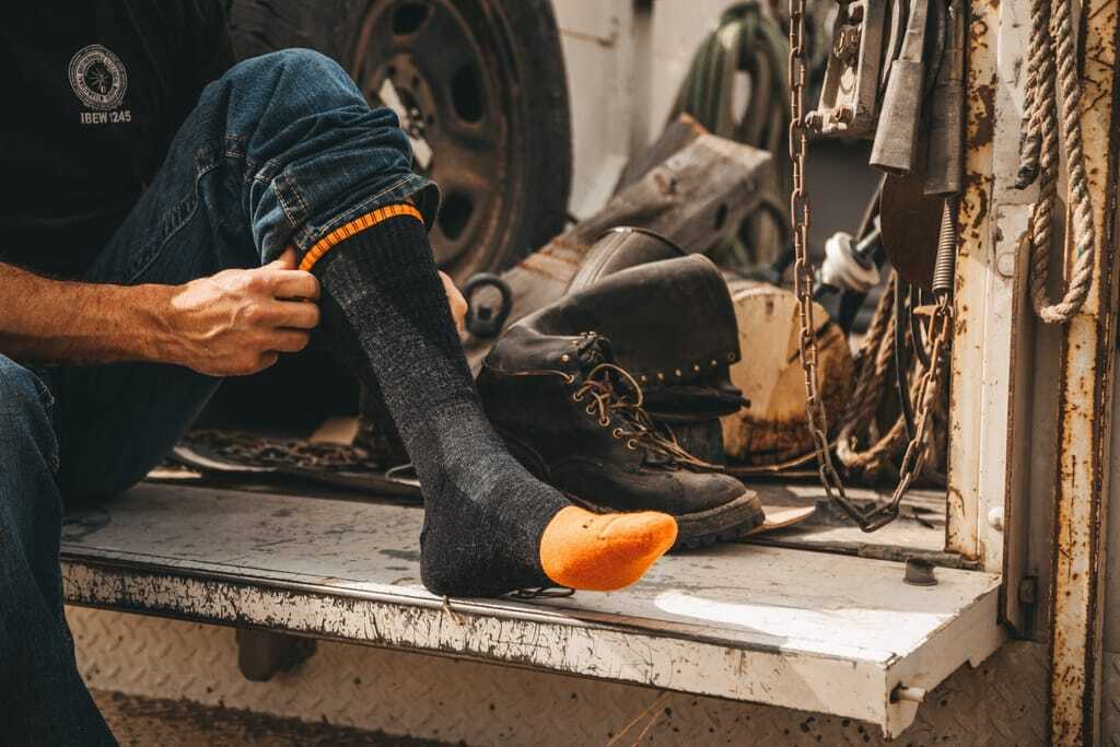 Die Workwear-Socken von Darn Tough Vermonts, die aus einer Mischung aus Merinowolle, Nylon und Lycra bestehen, sollen für Atmungsaktivität, Feuchtigkeits- und Wärmeregulierung sorgen.