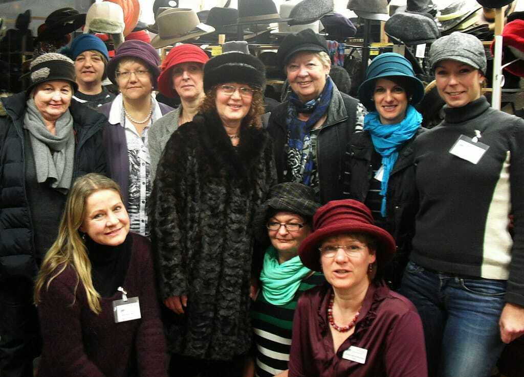 Meisterin Nose hat ein Händchen für den richtigen Hut zu jedem Gesicht und ließ die Teilnehmerinnen nach Lust und Laune ausprobieren. Auch wer an diesem Abend „seinen“ Hut nicht fand, ging doch mit dem Wissen nach Hause, dass eine Kopfbedeckung schön und gesund ist.