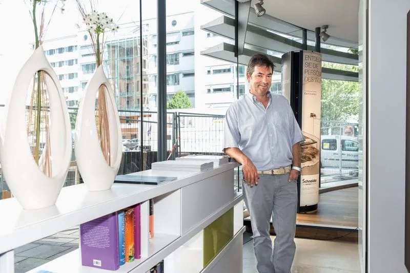 Bahnkunden können die Stuttgarter Filiale des Fellbacher Schreinermeisters Klaus Schneider genauso gut erreichen wie Autofahrer und ÖPNV-Nutzer. Sie liegt rund 400 Meter vom Hauptbahnhof entfernt an der Friedrichstraße, die Teil der B 27 ist. „Ich habe jahrelang nach einem Platz in der Innenstadt gesucht“, sagt der Handwerksunternehmer. „Hier finde ich Käufer für die Designmöbel aus meiner Herstellung, welche meinen Stammsitz in einem Gewerbegebiet 20 Kilometer östlich der Landeshauptstadt niemals aufsuchen würden.“ Schneider hat seinen 16-Mitarbeiter-Betrieb als „Ideen-Schreinerei“ positioniert, die neue Wohnungen und Büros mit maßgeschneiderten Möbeln einrichtet. Außerdem fertigt er für große Hersteller im Premiumsegment Kollektionen an. Als einer dieser Geschäftskunden, der Küchenhersteller Poggenpohl, für seine Stuttgarter Niederlassung wegen gestiegener Betriebskosten einen Untermieter suchte, schlug Schneider zu. Auf rund 250 Quadratmetern stellt er jetzt eigene Möbel aus. „Ich konnte seit der Eröffnung im Herbst 2014 trotz einer Dauerbaustelle vor der Tür viele Neukunden gewinnen“, bilanziert er zufrieden.