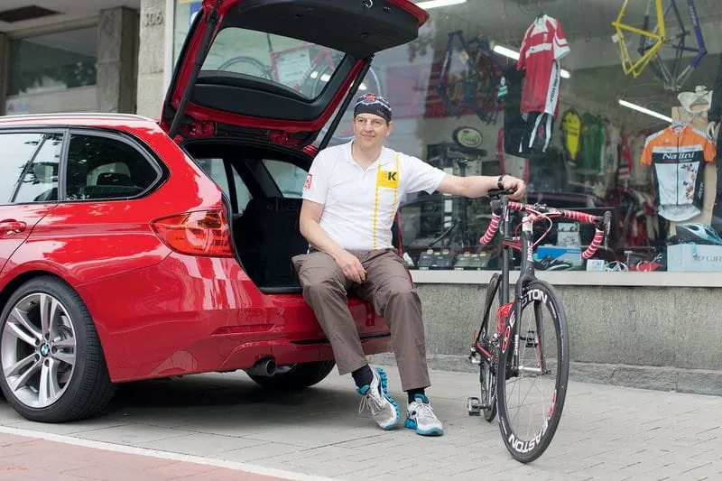 Das Cockpit ist erst mal zweitrangig. Schnurstracks schreitet Peter Zaun zum Heck des BMW 3er, klappt die Rückbank des Kombi um und hebt sein 7,5 Kilogramm leichtes Rennrad in den Kofferraum: „Passt!“ Dass das Rad mit kann, ist wichtig: Zaun ist Zweiradmechaniker und Besitzer des auf Rennradbau spezialisierten „Profi Shop Kunde“ in Köln. Auch privat fährt er gern Rennrad.