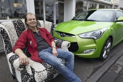 Stephan Kühlem, der Kölner Raumausstatter, testet den Hyundai Veloster. Und lobt den extrovertierten Auftritt des asiatischen Wagens.