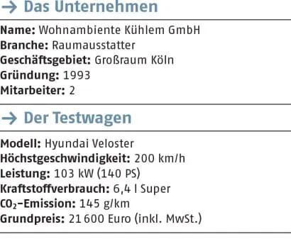 Stephan Kühlem ist ein lockerer Typ. Der Chef trägt auch im Winter T-Shirt und wirft beim Gang nach draußen vor die Tür höchstens den Arbeitskittel über, bevor er sich die nächste Zigarette dreht. Wenn der gelernte Raumausstatter nicht gerade Sessel neu bezieht oder Vorhänge maßschneidert, baut er Surfbretter für den Eigenbedarf. Denn Kühlem ist begeisterter Wellenreiter. Wochenends fährt er mit Vorliebe an die Nordseeküste und reitet die Wellen vom Frühjahr bis Herbst. Und wie es sich für einen Surfer gehört, tut er das standesgemäß mit einem VW-Bus, Modell T4 mit Kochgelegenheit und einem Schlafplatz. Wenn er sich ein Auto wünschen dürfte, wäre das ein Oldtimer, am liebsten ein Ford Mustang oder ein Bulli. Auf der Straße vor seinem Ladenlokal steht indes nun der neue Hyundai Veloster zur Testfahrt, dessen Name dem gebürtigen Kölner herzlich wenig sagt und flugs auf „Welossta“ eingekölscht wird. In leuchtendem Grün-Metallic geschminkt sieht der Südkoreaner aus, als wäre er aus dem letzten Karnevalszug direkt vor Kühlems Ladenlokal gerollt.