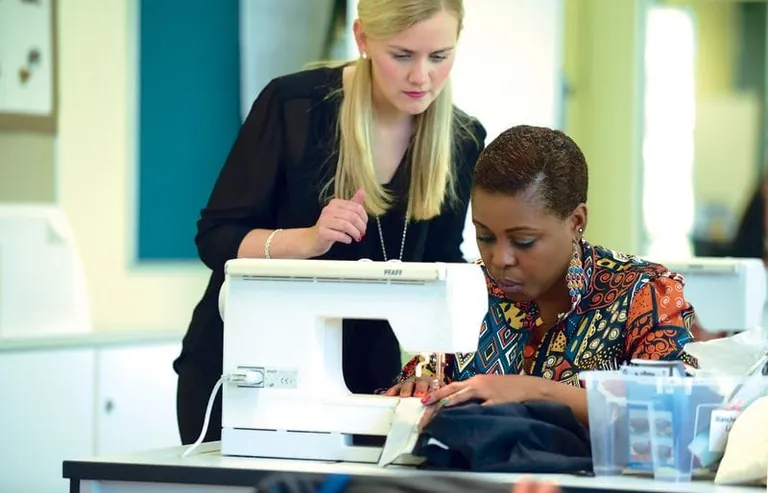Integrationsförderung: Schneidermeisterin Annabell Münscher schult Blanche Mbelani Lumingu aus Angola beim Projekt der Handwerkskammer Dortmund. - © Rolf Göbels