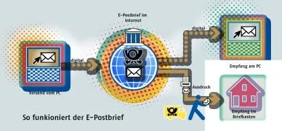 Die Deutsche Post verspricht ihren Kunden mit dem neuen E-Postbrief eine sichere elektronische Kommunikation im Gegensatz zu herkömmlichen E-Mails, die vor Angriffen aus dem Internet keinen zuverlässigen Schutz haben. Das sind die Vorteile des E-Postbriefs: