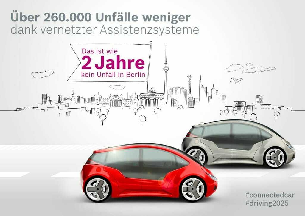 Fahrassistenzsysteme, autonomes Fahren und andere Technologien sorgen demnach nicht nur für mehr Sicherheit auf den Straßen. Unter anderem sollen dadurch 260.000 Unfälle mit Personenschaden (Deutschland: 30.000, USA: 210.000, China: 20.000) in Summe jährlich vermieden werden. Das seien so viele Unfälle wie in Berlin in zwei Jahren passieren. Es gebe 350.000 weniger Verletzte durch Verkehrsunfälle und rund 11.000 Menschenleben ließen sich demnach durch vernetzte Assistenzsysteme retten lassen, davon in Deutschland 300.