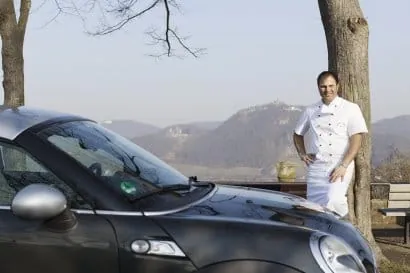 Die Kurven im Siebengebirge bei Bonn sind ihr Metier: Konditormeister Karl Heinz Abresch mag das flinke Mini Coupé, weil es so viel Fahrspaß bietet.