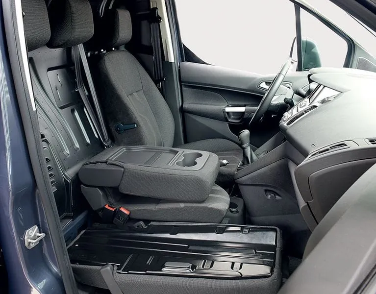 Der Transit Connect ist eine komplette Neuentwicklung, die sich jedoch der technischen Basis des Focus bedient. Entsprechend Pkw-like ist die Gestaltung des Fahrerplatzes, in dem nichts an die Tristesse eines Nutzfahrzeug-Innenraumes erinnert. Auch die Sicherheitsausstattung entspricht Limousinen-Niveau: Das automatische Notbremssystem „Active City Stop“ ist ebenso für den Transit Connect erhältlich wie bis zu sieben Airbags, eine Einparkhilfe, Abbiegelicht, Anhängerstabilisierung oder das sprachgesteuerte Konnektivitätssystem „Ford SYNC“ mit integriertem Notruf-Assistenten.