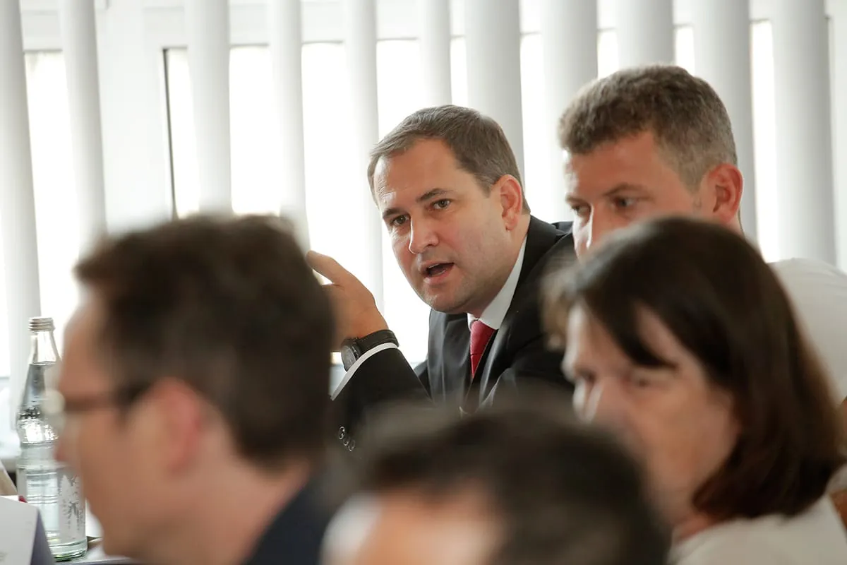 Die Sicherung von Fachkräften wurde im Mai bei der Handwerkskammer Ulm besprochen. Die Marktchancen des demografischen Wandels verhandelte man im Juni in der Kammer Mannheim sowie im September mit den Fachverbänden Elektro, Schreiner und Sanitär in Tübingen. Im hochsommerlichen Juli ballten sich dann die Termine: Ressourceneffizienz in der Kammer Karlsruhe.