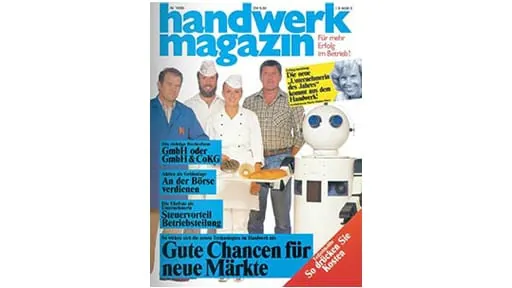 Im Oktober 1986 erschien die erste Ausgabe von handwerk magazin. Vom "Kollegen Roboter" über Geldanlagen, Bilanzen und die neuesten EDV-Anlagen bis hin zu den damals gültigen Steuersparmodellen erstreckten sich die Themen. Wer Lust hat, kann sich das ganze nochmal anschauen.