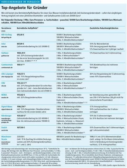 „Im Schadensfall kommt gerade in der Haftpflicht bei teureren Versicherern häufig eine bessere Lösung zustande als bei Billiganbietern“, erklärt der unabhängige Versicherungsberater Werner Fütterer. Für Existenzgründer sind in den ersten Berufsjahren bei vielen Gesellschaften Nachlässe möglich bis zu einem Drittel zum Beispiel in den Haftpflicht-Einsteigerpolicen (siehe dazu die Anbieter-Tabelle, Seite 69).