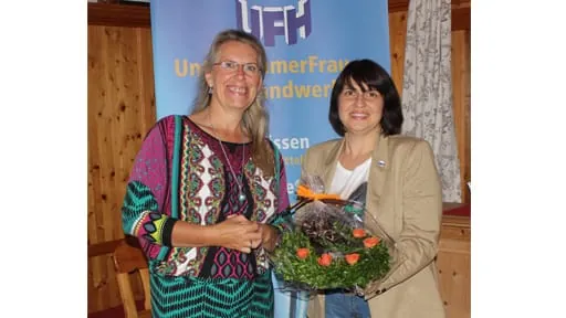 Die Frauen waren begeistert, da viele Anregungen nicht nur im privaten sondern auch im beruflichen Alltag sofort eingesetzt werden können. Erste Vorsitzende Manuela Nemela bedankte sich bei Sonja Rüter (www.coaching-rueter.de) mit einem Landshuter Buchskranzerl für den informativen Abend und informierte anschließen über weitere UFH-Termine.