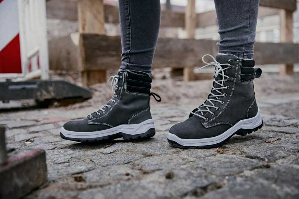 Der S3-Sicherheitsstiefel Lilly black high aus der Serie Trekking Lady ist mit Stahlkappe und Durchtritthemmung nicht nur für die Baustelle bestens geeignet, sondern fällt durch seine moderne Optik auch beim Stadtbummel positiv auf.