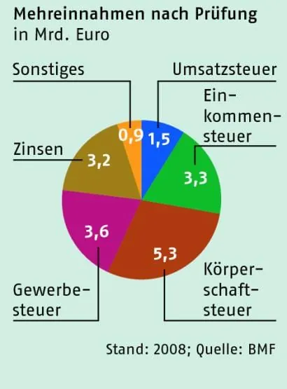 Bewaffnet mit Laptop und modernster Software schwärmen in Deutschland über 13000 Prüfer vom Finanzamt in die Betriebe aus. Sie bescheren dem Staat jährlich Mehreinnahmen von fast 18 Milliarden Euro, pro Prüfer sind das 1,3 Millionen.