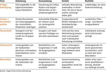Teamprämie, Erfolgsbeteiligung oder Akkordlohn so individuell wie die betrieblichen Gegebenheiten sind auch die Gestaltungsmöglichkeiten. Da es selten ein System für alle gibt, kombinieren viele Betriebe die verschiedenen Anreizmöglichkeiten für Führungskräfte und gewerbliche Mitarbeiter.