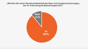 Die Website gilt als Basis dafür, um im Internet überhaupt sichtbar zu sein und mit dem Kunden in Kontakt zu treten. Doch dann fängt die eigentliche Arbeit erst an: Denn wer im Netz nicht mehr von sich erzählt, geht im Getöse des Wettbewerbs unter. Laut Digitalisierungsbarometer geben 89 Prozent der Kunden an, einen Handwerker zu bevorzugen, der im Internet gute Bewertungen hat. „Ein positives Kundenurteil erzeugt automatisch Vertrauen“, urteilt Owen. „Der Haus- oder Wohnungsbesitzer wünscht sich eine zuverlässige Ausführung und vertraut dabei auf Bewertungen im Internet, selbst wenn der Handwerker im Ort bekannt ist.“