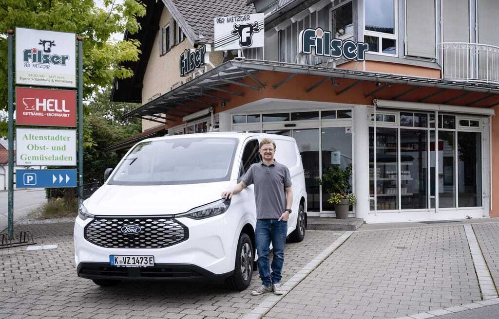 „Mein erster Eindruck: ungewohnt und neu“ – Handwerkschef Ludwig Filser aus Altenstadt in Bayern lacht. „Aber das war ein megaentspanntes Fahren“, sagt der Metzgermeister, der sich und sein Team als sehr offen gegenüber der E-Mobilität bezeichnet. Von den zwölf Mitarbeitern habe die Hälfte die Chance ergriffen und statt des einen Verbrenners im Fuhrpark den Ford E-Transit Custom pilotiert. „Wir haben in der Zeit den Testwagen mehr genutzt als den Diesel-Transporter“, erinnert sich Filser. Und das, obwohl er den Testwagen nicht für alle üblichen Einsatzzwecke der Metzgerei nutzen konnte, da ihm der notwendige Kühlausbau für die Kühlkette fehlte.