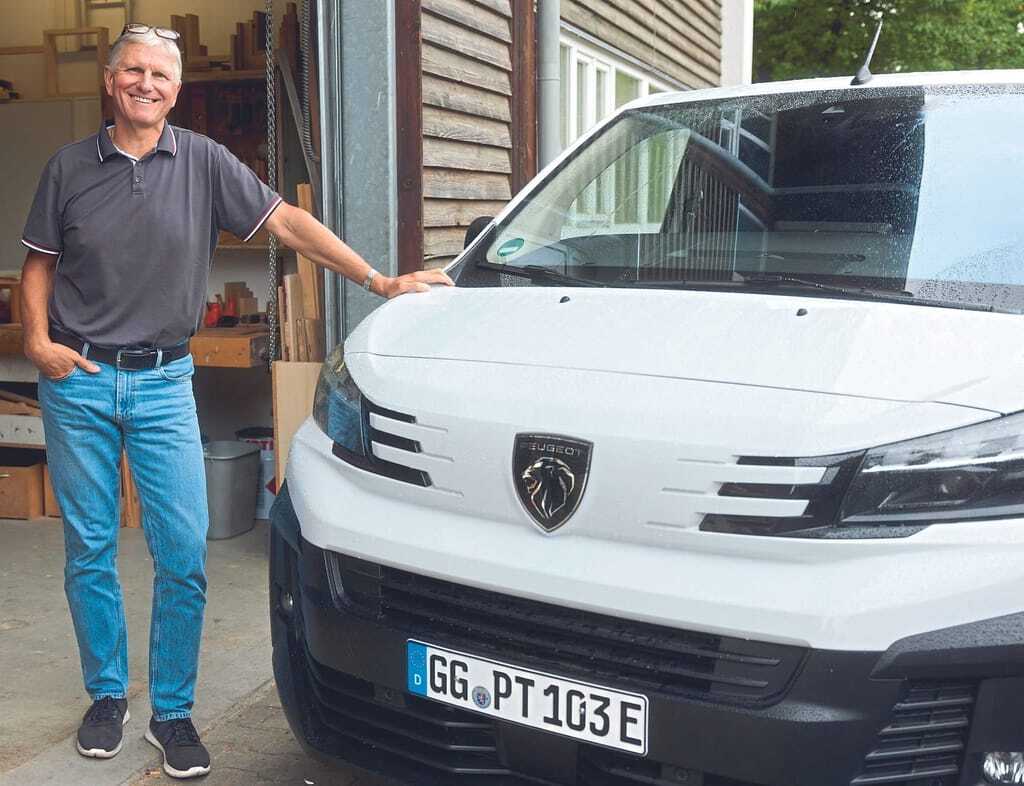 Plaschke prüfte zwei Wochen lang den Peugeot E-Expert Kastenwagen mit dem 100 kW/136 PS starken E-Motor auf seine Alltagstauglichkeit in der Schreinerei. Mit dem Testwagen war er im Raum München, also zwischen 50 und 100 Kilometer pro Tag, unterwegs – um Kunden zu besuchen sowie Material oder Werkzeug von A nach B zu transportieren. Und das Laden? „Ausschließlich im Betrieb“, sagt Plaschke. Besonders gut habe ihm am elektrischen Franzosen das Fahrerhaus, die Ladekapazität und Nutzlast sowie die Übersicht beim Fahren gefallen – schrieb er in den Bewertungsbogen. Insgesamt bewertete er die Reichweite, den Fahrkomfort, das Ladevolumen und die Nutzlast, die Bedienbarkeit und die Technik sowie den Gesamteindruck mit „gut“. Einzig bei der Ladezeit gab’s ein „befriedigend“. Auch das Tempolimit-Warnsignal habe ihn etwas gestört.
