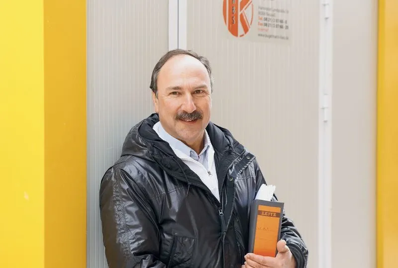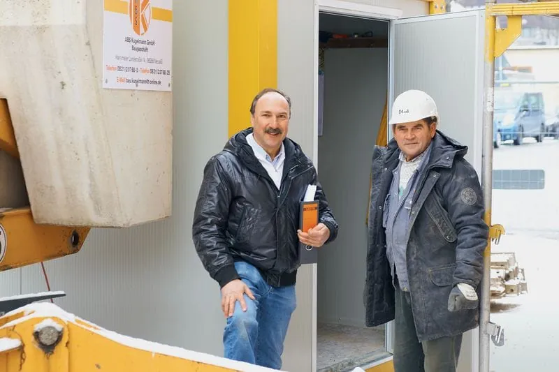 „Wir lassen so wenig Material und Werkzeuge auf der Baustelle wie es nur geht.“ Adolf Kugelmann (li.), Maurermeister und Geschäftsführer der ABS Kugelmann GmbH in Augsburg.