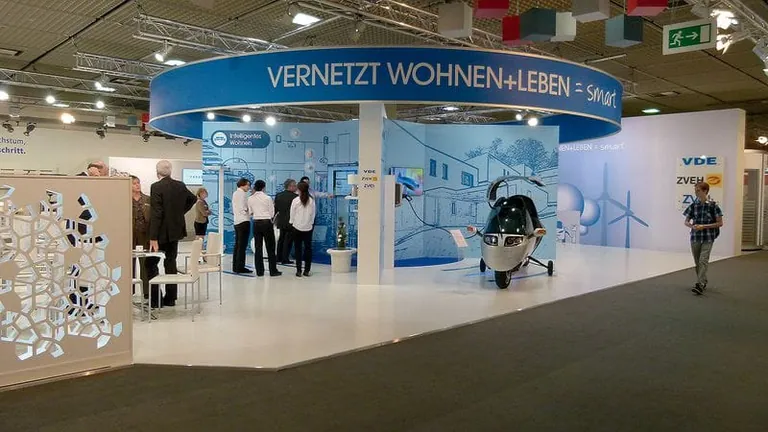 Unter dem Motto „vernetzt  wohnen + leben ist smart“ wollen die Verbände die smarte Technik für Wohn- und Lebensräume fördern. Auf dem Stand präsentierten sie das Zusammenspiel zwischen Energieerzeugung, Energiemanage­ment, Entertainment und Elek­tromobilität. Eines der Highlights des Gemeinschaftsstandes war ein Elektromotorrad. Das stromlinienförmig gebaute Fahrzeug hat eine Karosserie aus faserverstärktem Kunststoff mit einem Lithium-Polymer-Akku und 150 kW-Motor. Das Elektromotorrad beschleunigt auf 240 km/h und muss erst nach 300 Kilometern an die Steckdose, um die Akkus aufzuladen.