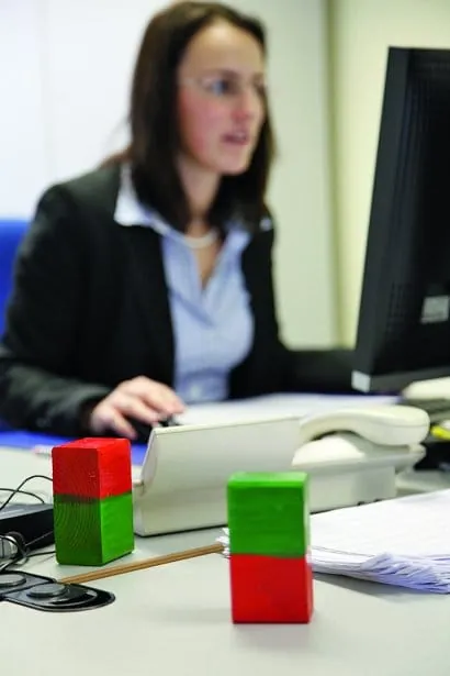 Neben den Bürotüren hängen kleine Checklisten. Sie zeigen, was Mitarbeitern bei Gesprächen wichtig ist. Nicola Lang, Sachbearbeiterin Auftrags- und Kundenservice, wünscht sich zum Beispiel „Zeit, sich mit einer Situation vertraut zu machen“. Verboten ist „vorschnelles Handeln“. Auf den Schreibtischen im Büro stehen rot-grüne Klötzchen: Ist die grüne Seite oben, haben Lang oder ihre Kollegin Alexandra Seitz Zeit für die Wünsche von Kollegen, steht der Klotz auf Rot, möchten sie lieber ungestört arbeiten. „Wirksame Kommunikation setzt offene Ohren voraus“, erklärt Kienzl, „auch dabei hilft das Visuelle.“