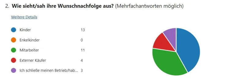 - Wie sieht/sah ihre Wunschnachfolge aus? Kinder, Enkelkinder, Mitarbeiter, externe Käufer, Betriebsschließung