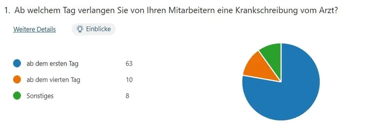 Dass 63 Teilnehmer ab dem ersten Krankheitstag ein ärztliches Attest verlangen, überrascht sie hingegen nicht: „Wer sehr viele Mitarbeiter oder Saisonkräfte einsetzt, braucht die enge Führung wohl, um ein Krankfeiern nicht allzu leicht zu machen“, so Beil.