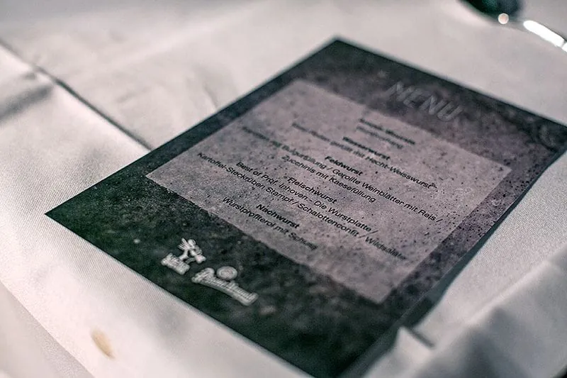 Hendrik Haase ist Wurstblogger, Food-Aktivist, kulinarischer Kurator und an diesem Abend hauptsächlich Moderator. In seiner Tischrede erzählt er davon, dass das Metzgerhandwerk bedroht ist, wenn sich keiner darum kümmert. Er begeistert, erklärt, warnt, wünscht guten Appetit. Für viele ist es ein Spaß-Event unter Genießerfreunden, ja, aber eben mit Botschaft.