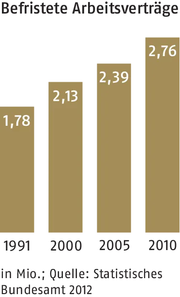 Will der Nachfolger neue Fachkräfte einstellen, raten Fachleute zum Abschluss befristeter Verträge. Inzwischen wird in Deutschland fast jeder zweite neue Arbeitsvertrag in dieser Form abgeschlossen (siehe auch Grafik). Die Einsatzmöglichkeiten sind vielfältig. Rechtsanwalt Höser: „Ob zur besseren Erprobung, zur Aushilfe oder zur Überbrückung von Spitzenzeiten - mit befristeten Arbeitsverträgen bleiben Chefs flexibel. Damit lässt sich die Personalstärke zielgenau an den aktuellen Bedarf im Betrieb anpassen, weil die Verträge nach Ablauf des vereinbarten Termins ohne weiteres auslaufen.“ Keine Kündigung, keine Abfindung, kein Prozess. Der Kündigungsschutz spielt keine Rolle.