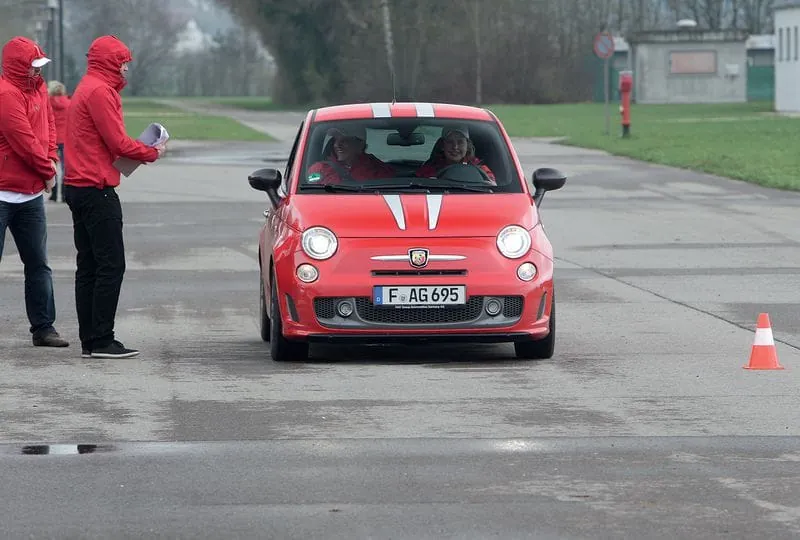 Der Abarth Tribute Ferrari sorgte bei den Handwerkern für Nervenkitzel am Steuer.