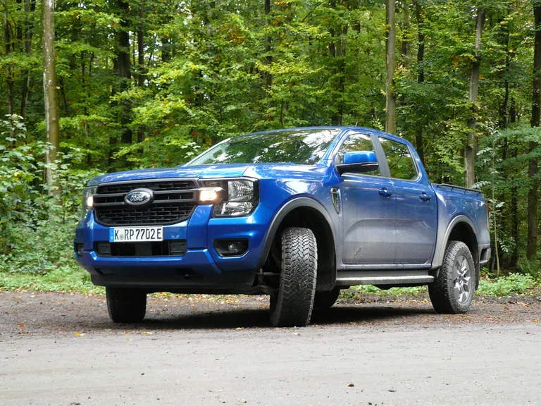 Aus Sicht seiner Konzernheimat zählt der Ranger eher zu den Hänflingen, aber in Europa mit 5,35 Metern Länge bereits zu den imponierenden Gestalten. Mit einer hohen und langen Motorhaube, einem wuchtigen Kühlergrill mit großem Markenemblem. Hinten hilft eine seit­liche Trittstufe beim Besteigen der Ladefläche. Für sie hält Ford Abdeckungen und Unterteilungen bereit. Auch zwei 230-Volt-Steckdosen, sie versorgen Elek­trowerkzeuge mit Strom.