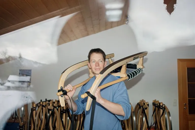 Marcus Grausam hat sein Hobby zum Beruf gemacht. Der gelernte Schreiner war zehnmal Deutscher Meister im Naturbahnrodeln und baut seit 2003 lenkbare Freizeitrodel für eine stetig wachsende Kundschaft. „Die Leute suchen nach einem neuen Trend für den Winter. Rodeln ist mal was anderes und eine super Alternative zum sehr teuren Skisport“, sagt Grausam.