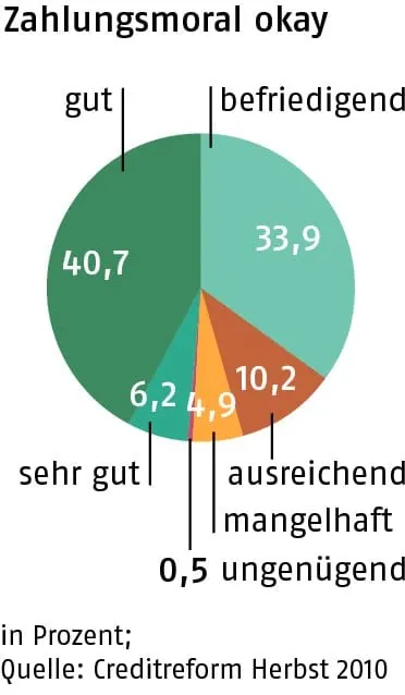 Doch Ulrike Rieger wartet nicht ab, bis Deutschland die Richtlinie spätestens 2013 umgesetzt hat. Zahlt einer ihrer Geschäfts- oder Privatkunden nicht innerhalb der in der Rechnung angegeben Frist, hakt sie nach, zuerst telefonisch. „Ich frage freundlich, ob alles in Ordnung ist und wann wir mit der Überweisung rechnen dürfen. Fehlt angeblich die Rechnung, faxe ich sie schnell zum Kunden.“ Kommt das Geld dann immer noch nicht, gibt es eine schriftliche „Zahlungserinnerung“ mit der Bitte, innerhalb von zwei Wochen zu bezahlen. Geht in der Zeit kein Geld ein, schickt Ulrike Rieger eine „Letzte Mahnung“ mit einer Frist von maximal sieben Tagen. Wenn jetzt das Geld immer noch ausbleibt, gibt sie den Fall an Creditreform zum Inkasso ab.