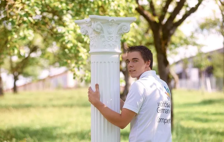 Er ist als Gewinner der WorldSkills 2013 in Leipzig das neue Vorbild der Stuckateure. Und er ist ein Vorzeigehandwerker, ideal geeignet, um jungen Leuten das Handwerk ans Herz zu legen. Der 21-jährige Andreas Schenk hat im Familienbetrieb im schwäbischen Ehingen seine Ausbildung zum Stuckateur absolviert und nach der Gesellenzeit mit dem Meisterbrief seine Lehrjahre beendet. In zehn bis 15 Jahren wird er den Betrieb seines Vaters übernehmen. Der Familienbetrieb behauptet sich mittlerweile seit 46 Jahren erfolgreich im Markt und beschäftigt 18 Mitarbeiter.