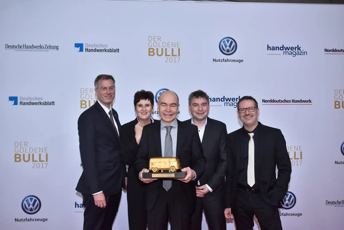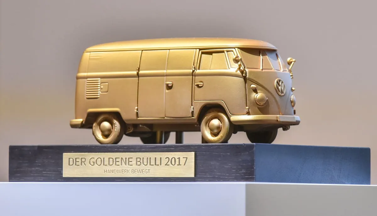 Der Goldene Bulli ist eine Gemeinschaftsaktion von Volkswagen Nutzfahrzeuge, handwerk magazin, Deutsche Handwerks Zeitung, Deutsches Handwerksblatt und Norddeutsches Handwerk. Die Preisverleihung fand in Berlin vor rund 200 Gästen statt.