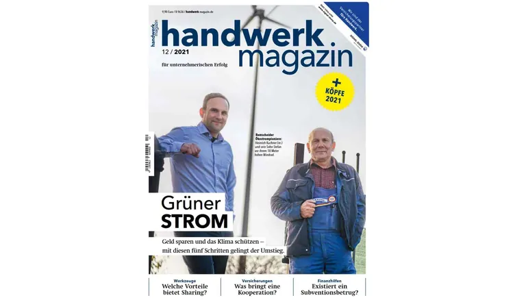 Zwei Handwerkschefs aus Nordrhein-Westfalen machen vor, wie man nicht nur nachhaltige Energie beziehen, sondern auch diese mit wenig Aufwand und planbaren Kosten selbst produzieren kann. Beide sind überzeugt: Handwerksbetriebe können in Sachen Ökostrom viel mehr tun als bislang – und dabei Geld sparen. Wie ihnen das gelingt, verrät die Titelgeschichte ab Seite 16.
