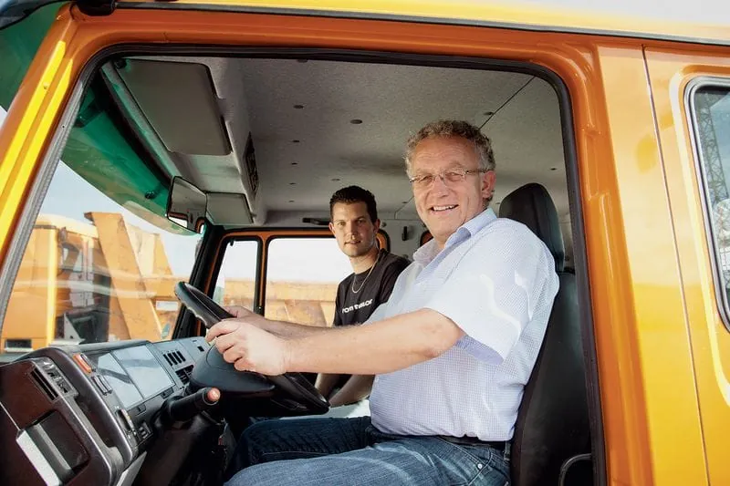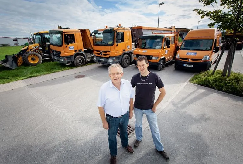 Bauunternehmer Martin Hirschberger und Sohn Jan haben ihren Fuhrpark mit einem Branchentarif versichert.
