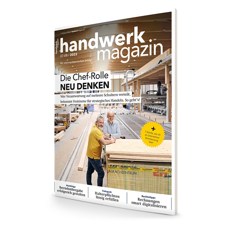 Lust auf mehr "handwerk magazin" bekommen? Sie sind noch kein Abonnent? Dann schauen Sie direkt in unserem Abo-Shop vorbei: handwerk-magazin.de/abo.
