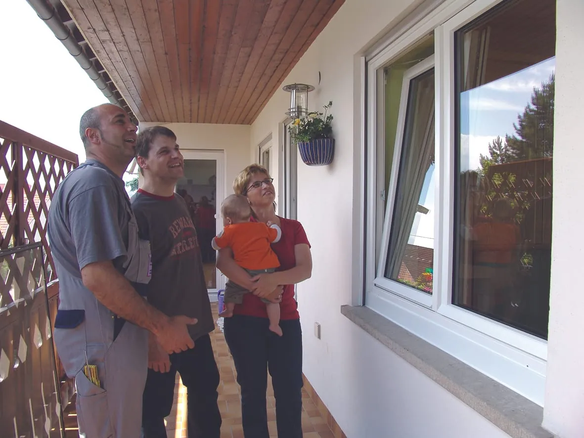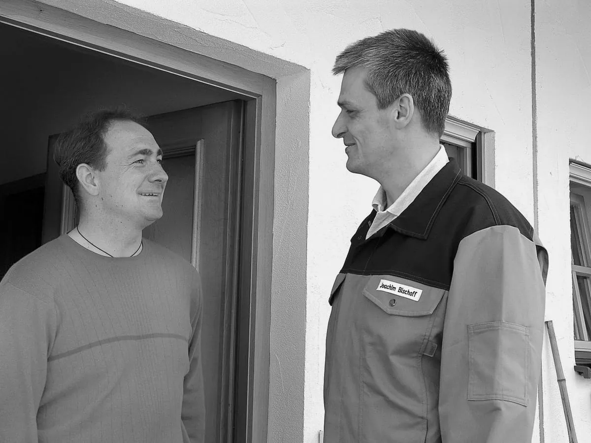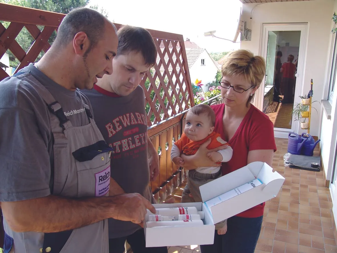 Erste Stufe der Annäherung: Nach dem Klingeln bleibt der Handwerker in einer höflichen Distanzzone und lässt die Kunden erst aus ihrem Haus kommen.