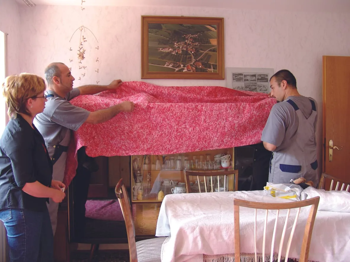 Um Kundeneigentum zu schützen, müssen Böden und Laufstraßen abgedeckt werden...