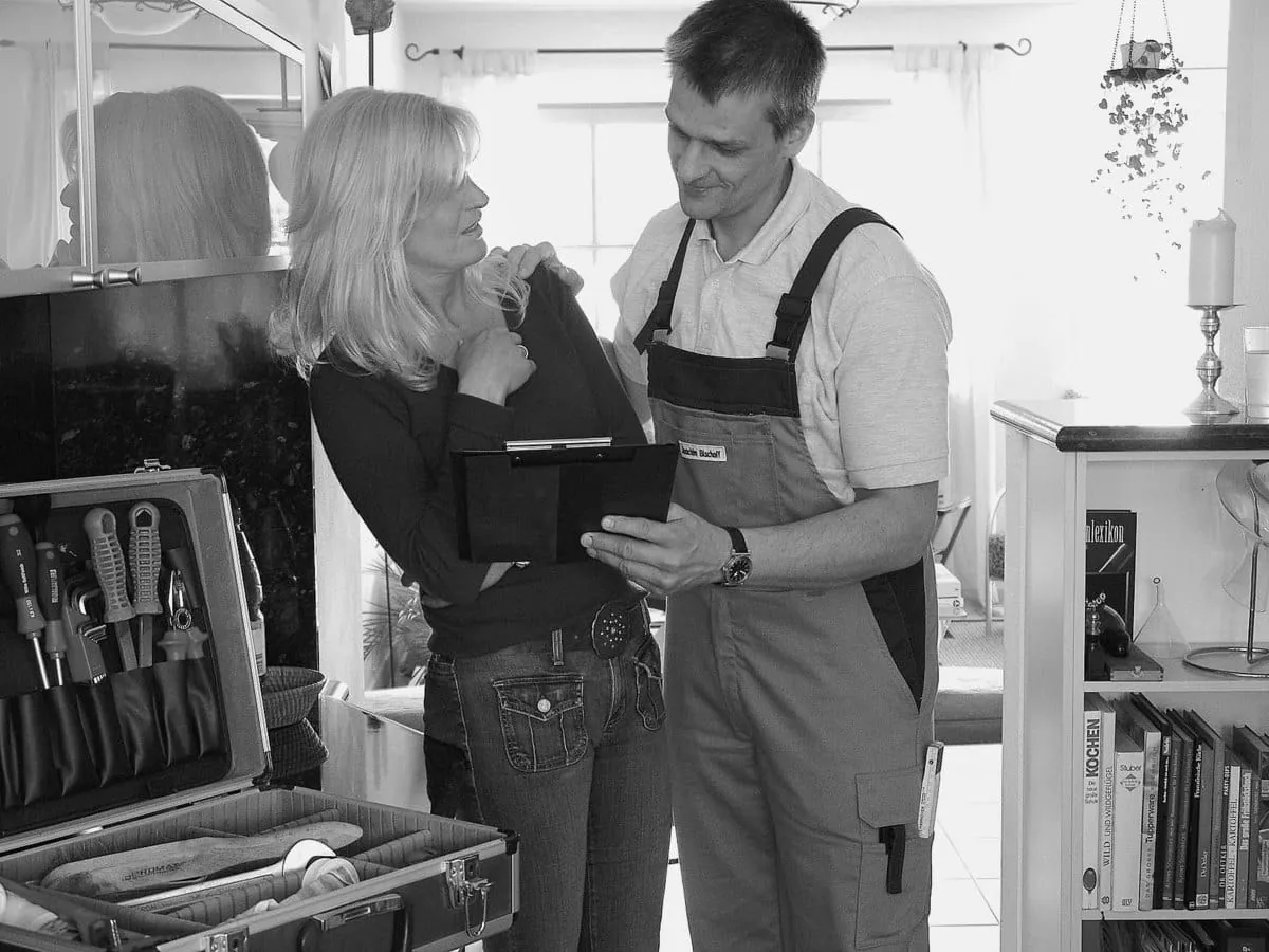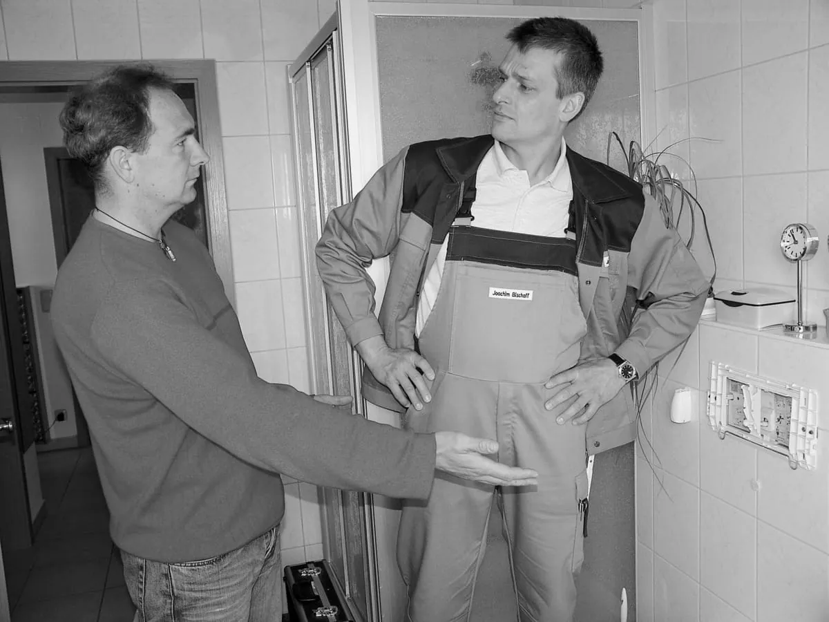Nächster Punkt: Der Handwerker bespricht mit dem Kunden die Arbeitsweise.